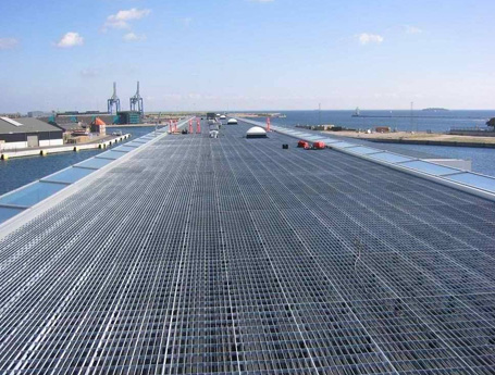 橋墩格柵板:通過荷載和橫桿,是按一定的間隔扁鋼緯安排在氣體保護焊,焊接而成。其特點為:強度高、重量輕結構:強烈的網格焊接使它具有高負荷、重量輕、便于起重結構特點、外形美觀、耐用;熱浸鋅表面處理使它相當有良好的耐腐蝕性,表面光澤美麗;通風、采光、散熱、防爆、防滑性能好;防積灰塵。廣泛應用于石油化工···