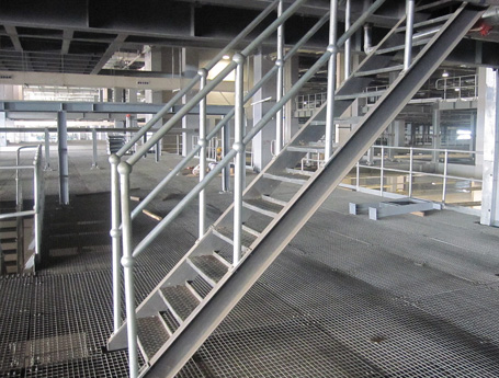 化工廠用鋼格板 鋼格板是用承載扁鋼和橫桿按照一定的間距進行正交組合,通過焊接或壓鎖加以固定的開敞式鋼構件;橫桿一般采用經過扭絞的方鋼、也可采用圓鋼或扁鋼,材質分為碳鋼和不銹鋼鋼格板主要用來做鋼結構平臺板、溝蓋板、鋼梯的踏步板、建筑物吊頂等。 簡介 ···
